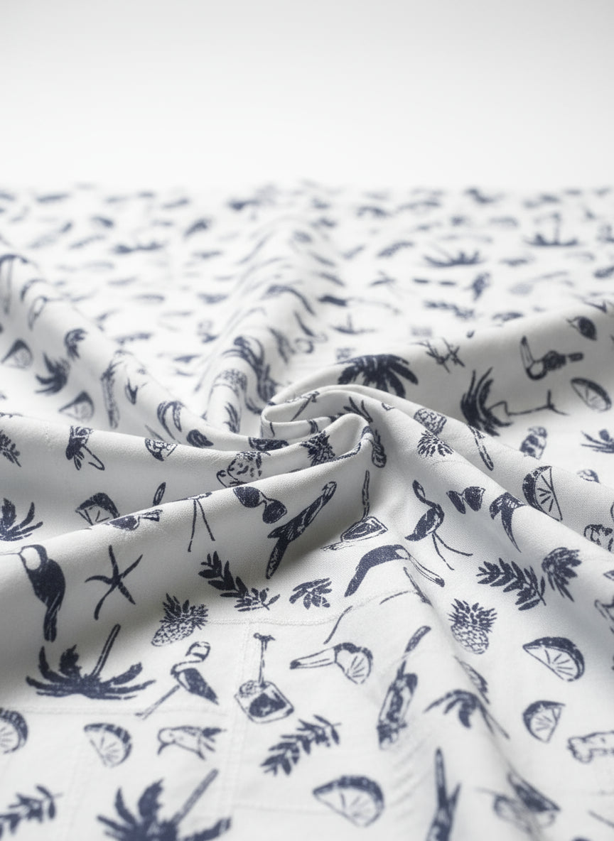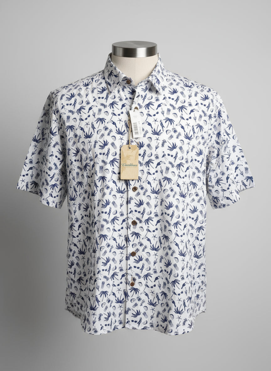 Camisa Caribbean Estampado Tropical con Piñas, Aves y Cócteles